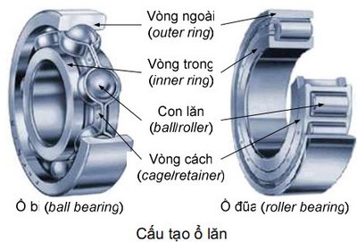- gồm 4 bộ phận chính: vòng ngoài, vòng trong, con lăn và vòng cách